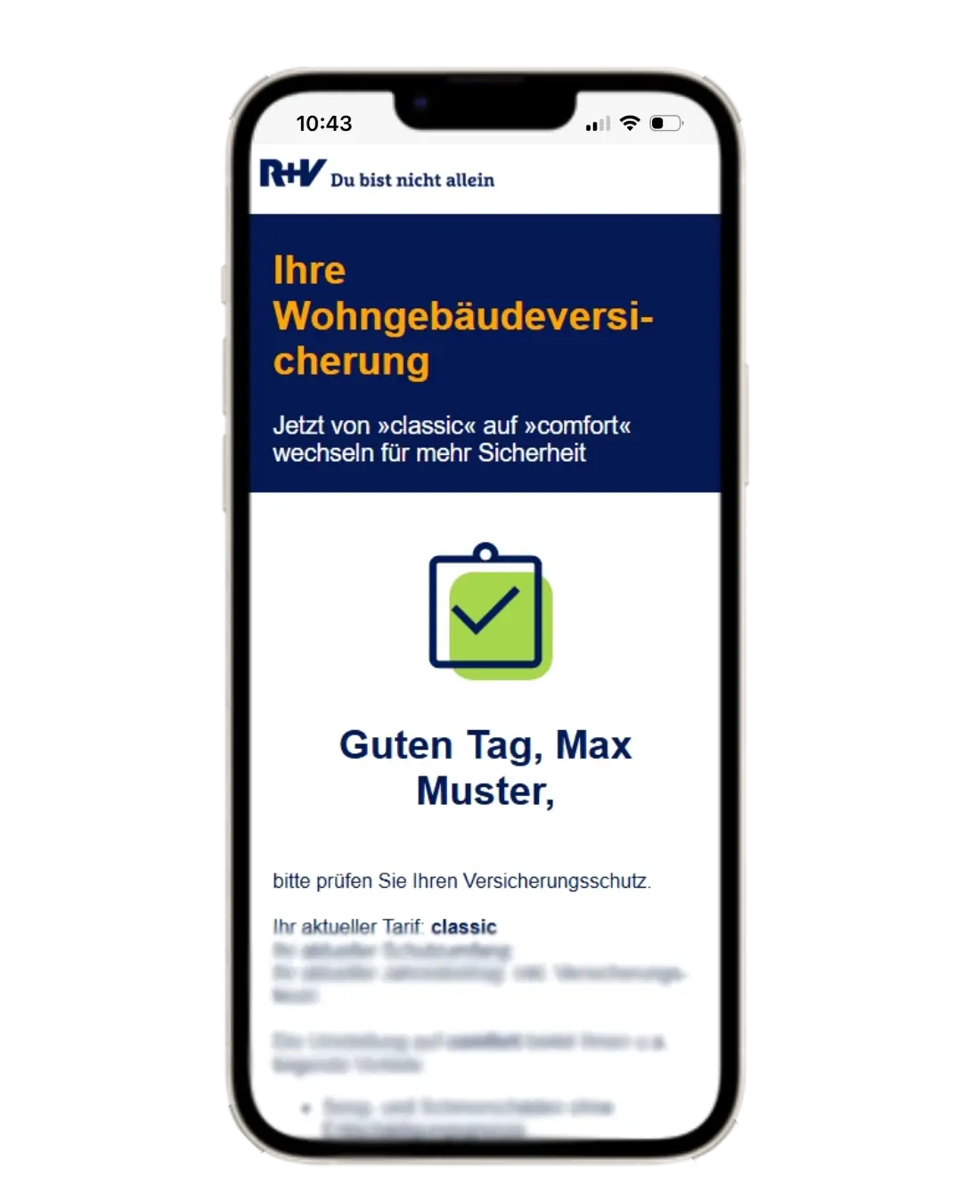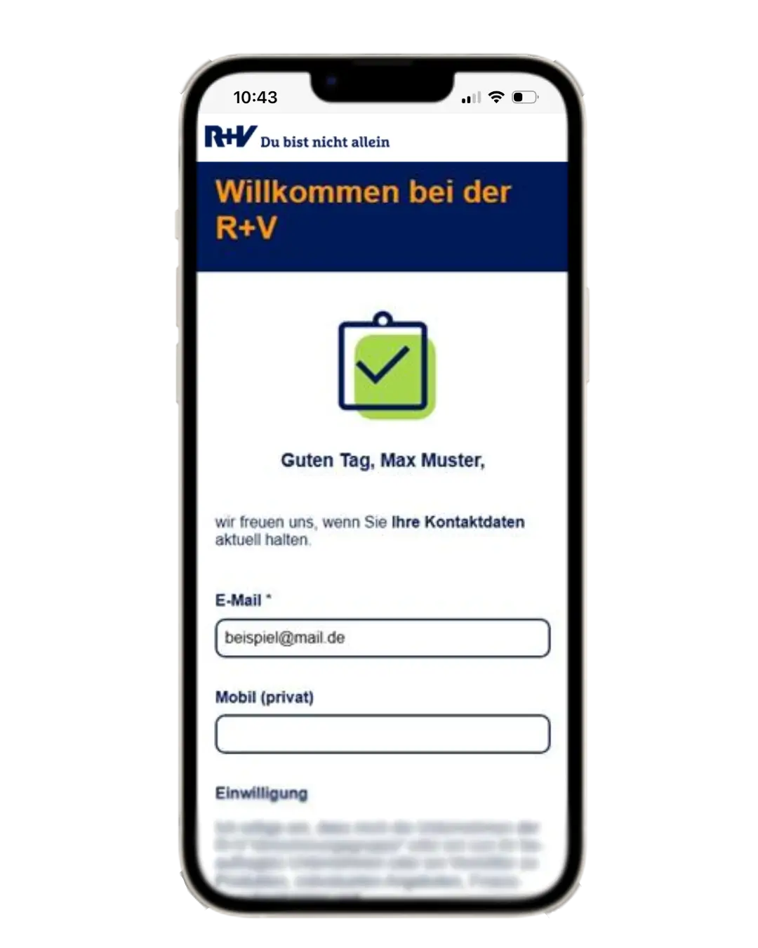 Postalisch starten, digital skalieren: Kundinnen und Kunden melden Kontaktdaten zurück; die Einwilligungen werden bedarfsgerecht eingeholt. Durch den Double-Opt-In sind Kontaktdaten umgehend verifiziert und rechtssicher – bereit für personalisierte Ansprache und effiziente Kampagnen. Zusätzlich nutzen wir – DSGVO konform – auch E Mail als digitalen Touchpoint, um weitere Kontaktdaten einzuholen, Adressänderungen zu erhalten sowie Einwilligungen und Präferenzen komfortabel zu verwalten.