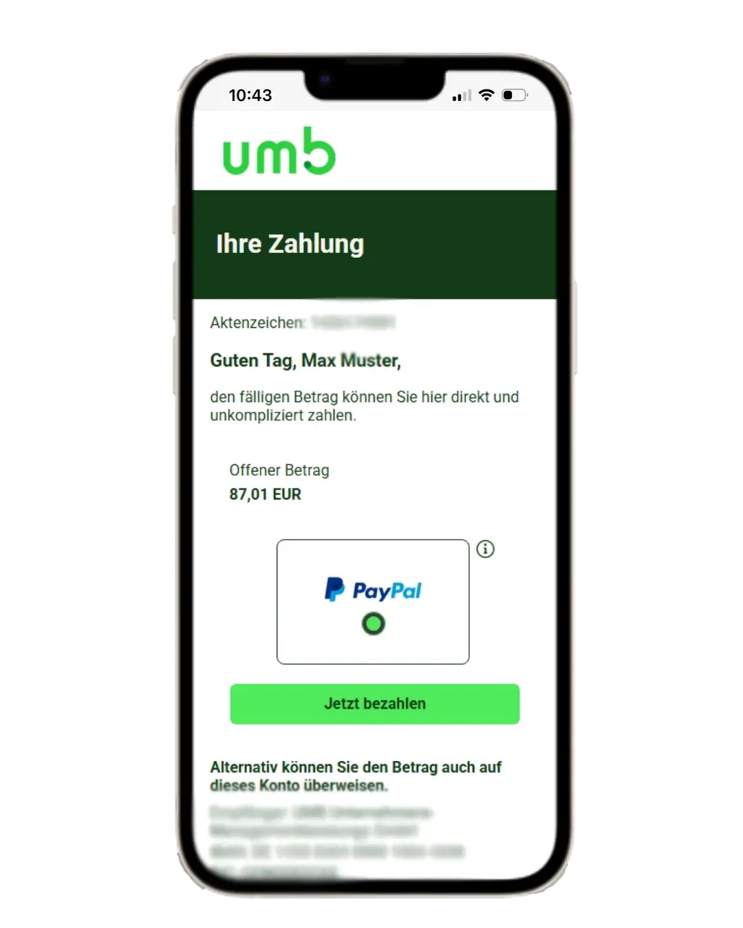 Wir informieren Kund*innen klar und direkt: Offene Beträge werden transparent dargestellt, alle Details auf einen Blick. Die Zahlung erfolgt über eine definierte, aber flexible Auswahl vertrauter Optionen – schnell, sicher, ohne Umwege.